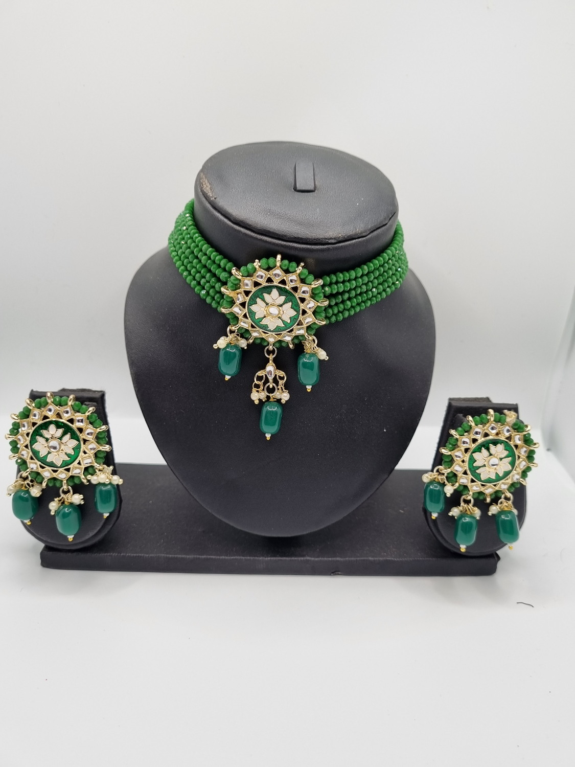 £15Green beads with kundan stones