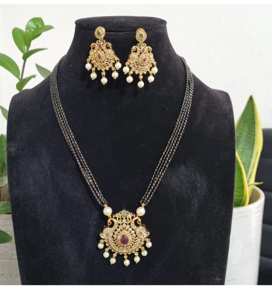 Long Necklace Set with Paecock Pendant
