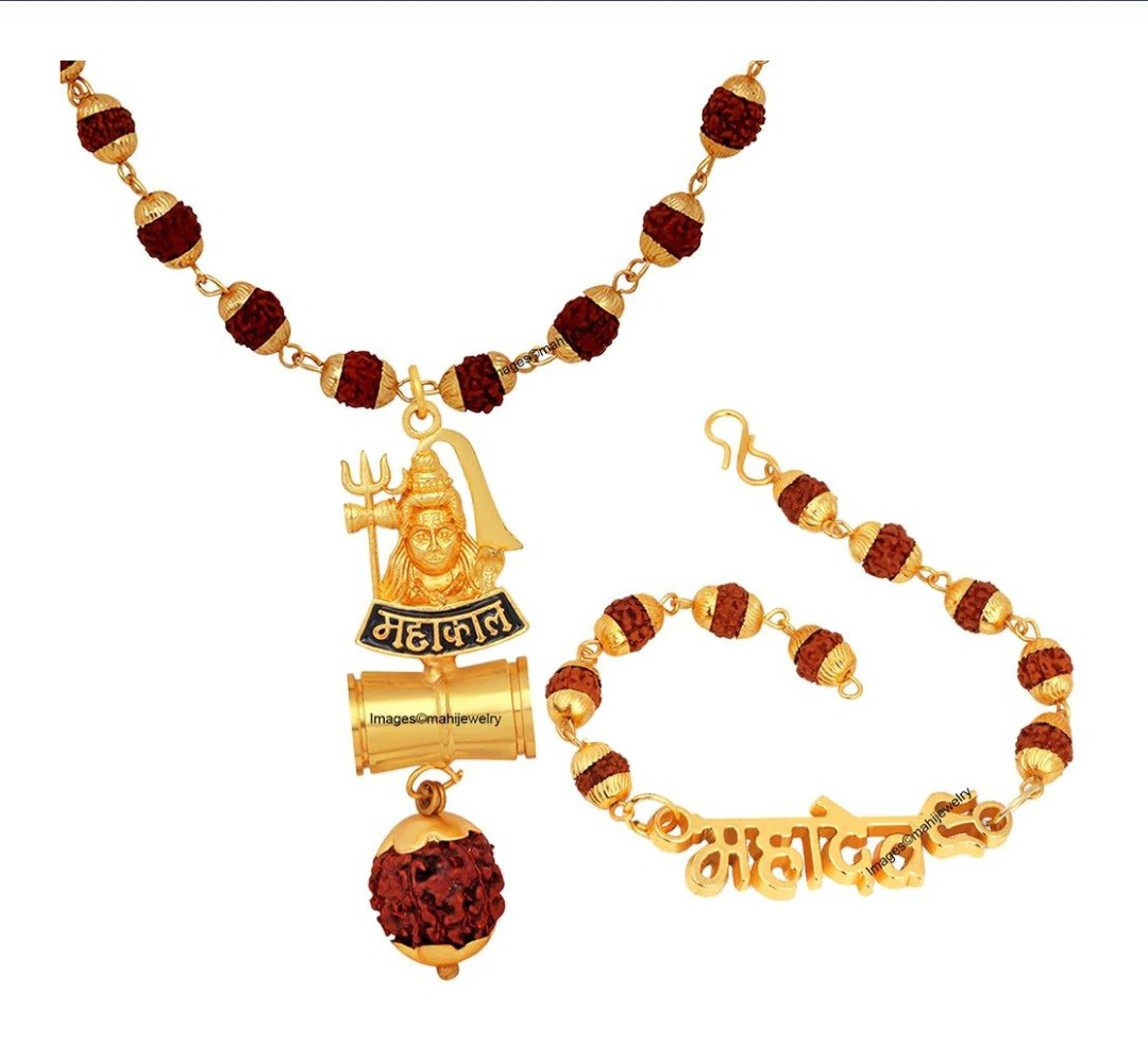 £20Combo of Mahadev Bracelet and Mahakal Shiva Damru Pendant with 24" Rudraksha Mala for Men