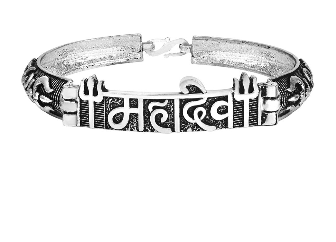 £13Silver Oxidized plated Mahadev and Trishul Bracelet Kada for Men