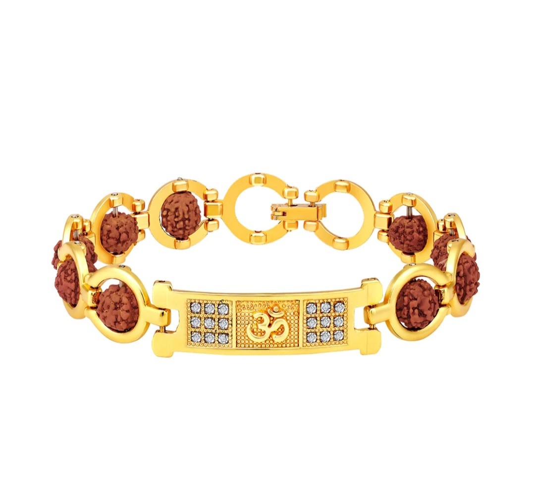 £14OM engraved broad bracelet with Rudraksh and Crystal for Men