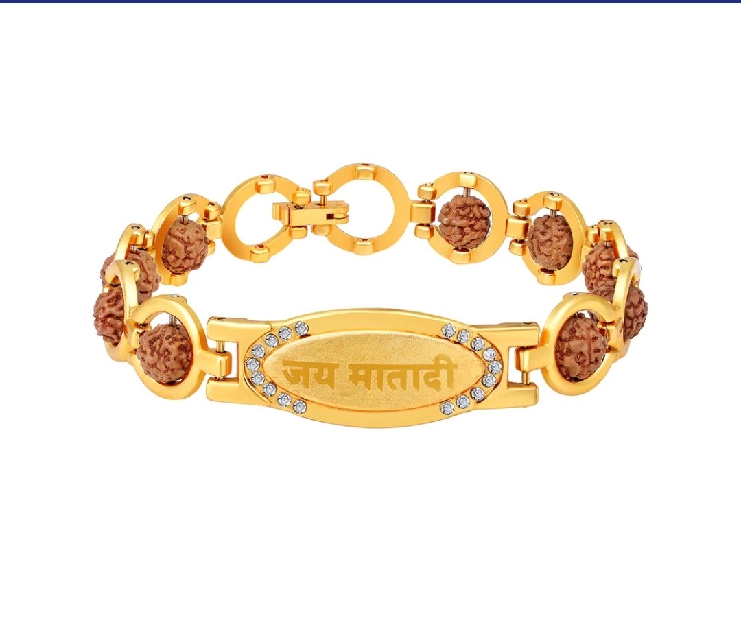 £14Gold and Rhodium Plated Religious Jai Mata Di Rudraksh Bracelet for Men