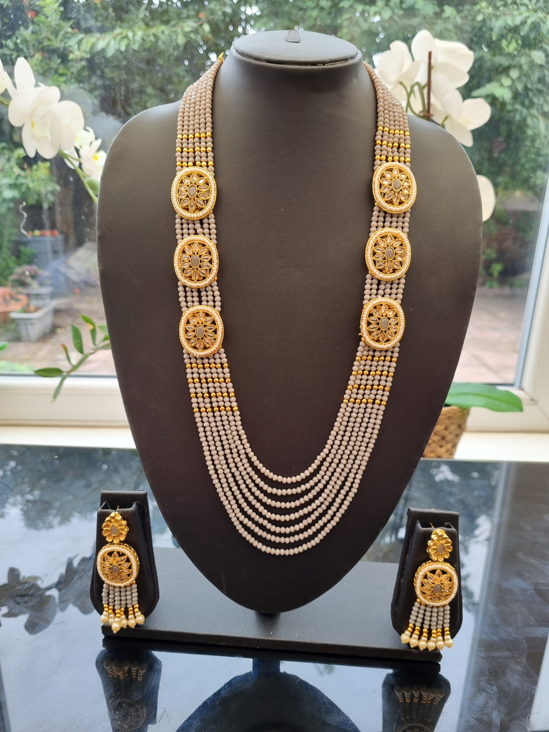£19.99Grey pearls with kundan stones