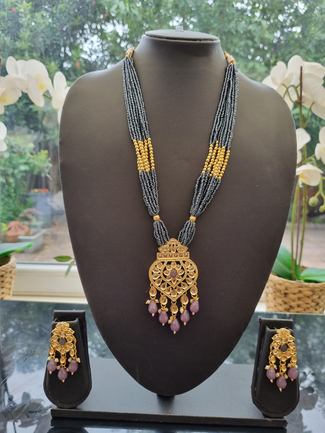 £17.99Grey with golden beads and kundan stones