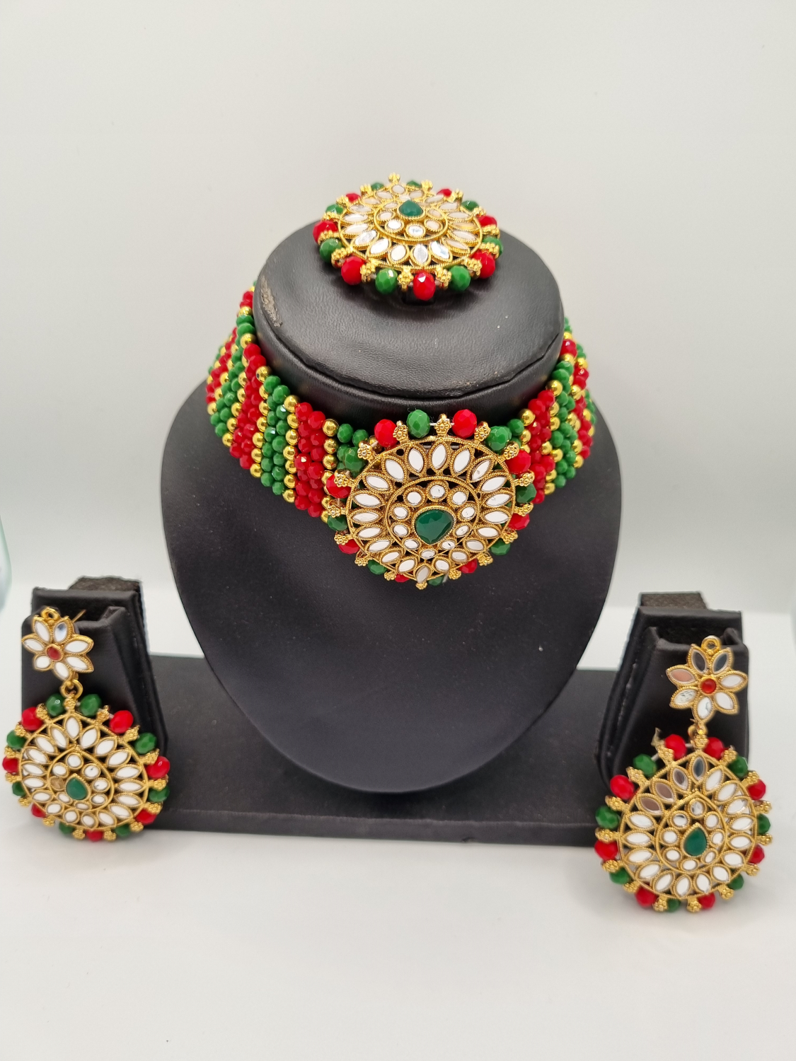 Beads / Stones : Stones / beads if used in the jewellery are either fibre based or glass based. These are all artificial stones, they are not precious or semi precious.Jewellery Base Material : Metal Alloy (Copper / Brass)