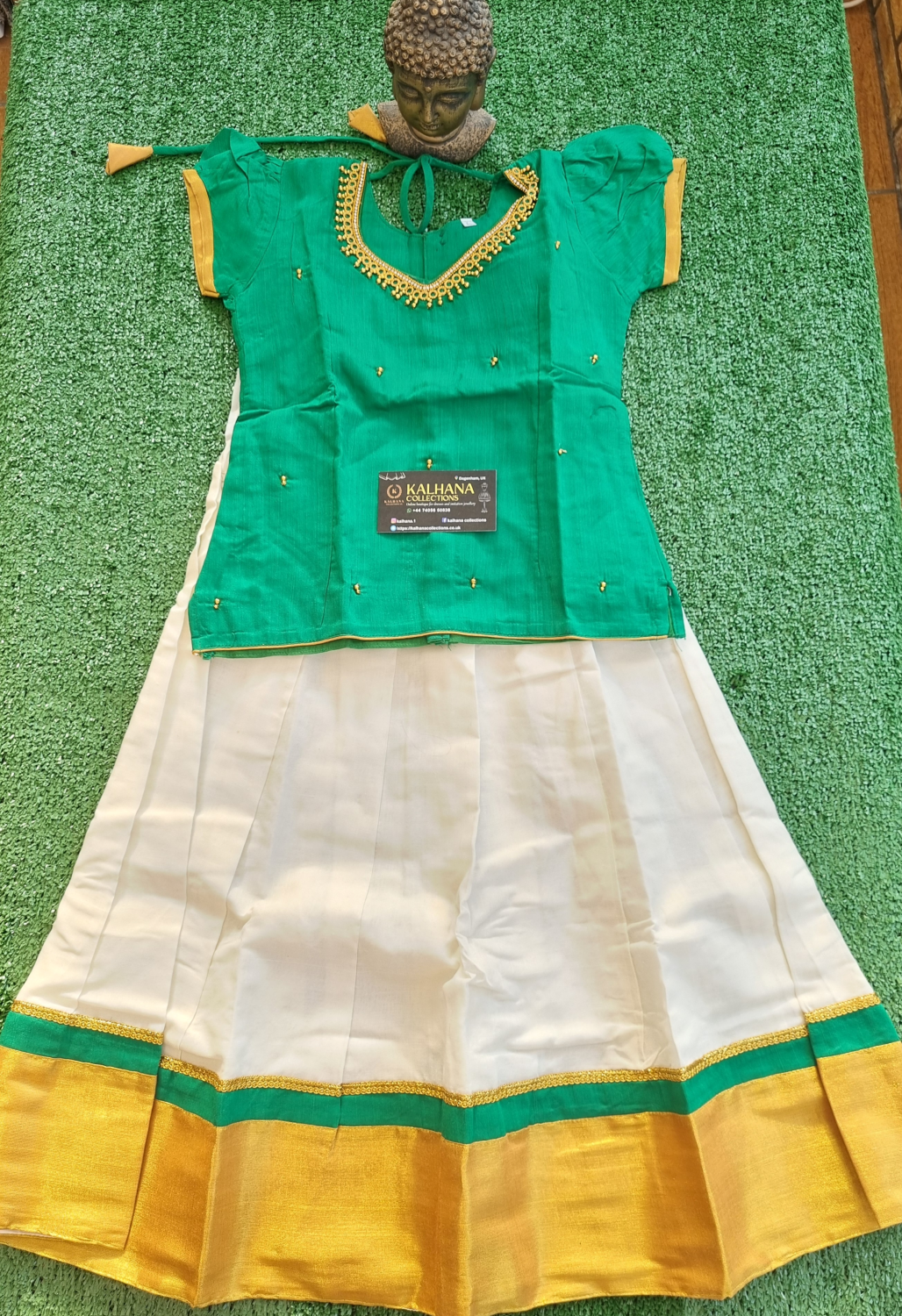 £24Green and off-white. Size 6-12 yrs available. Prize from 22-24 pound