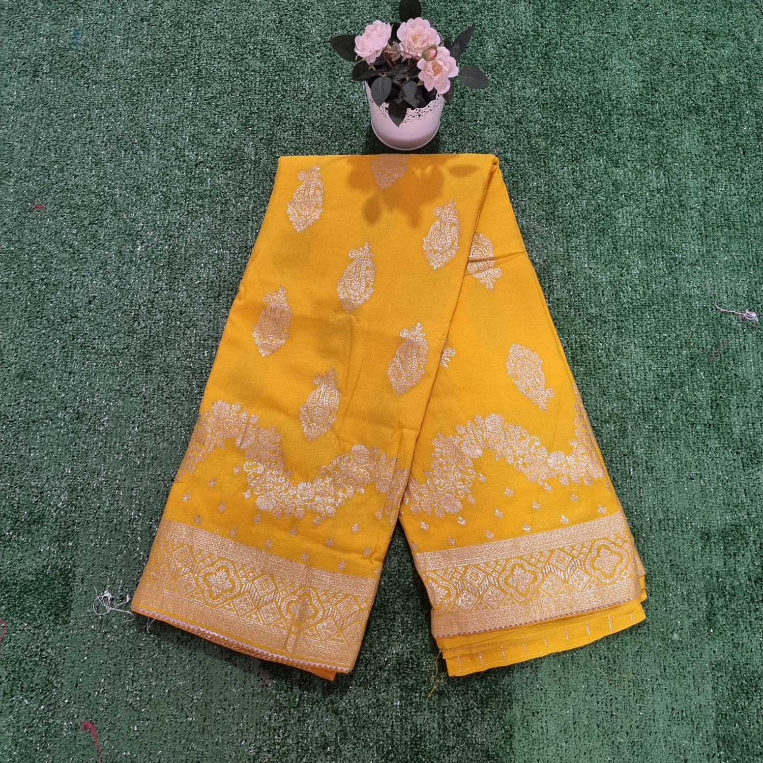 Banarasi Crepe Material-Bright Yellow